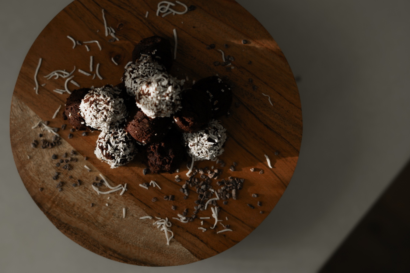These brownie bites came out of a failed attempt to make grain-free, dairy-free, plant-based brownies. It turns out coconut flour works better pressed into brownie balls instead. Try out different toppings and let me know how they turn out!